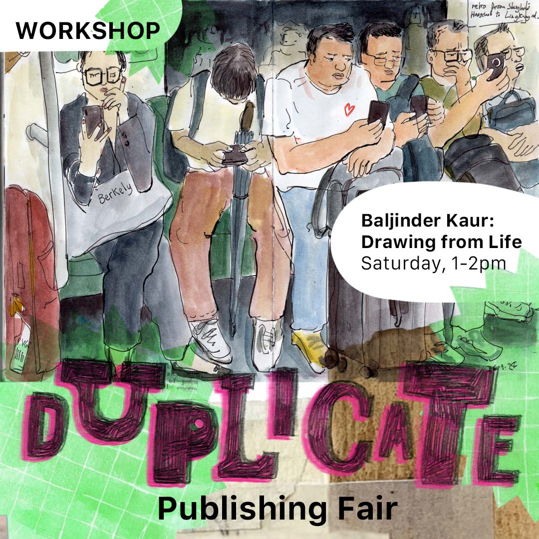 Join illustrator Baljinder Kaur to learn more about drawing from life and have a go yourself by documenting Duplicate Fair in this one-hour drawing workshop.